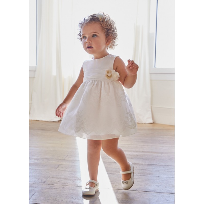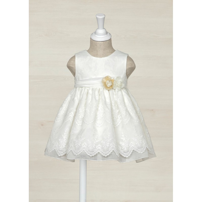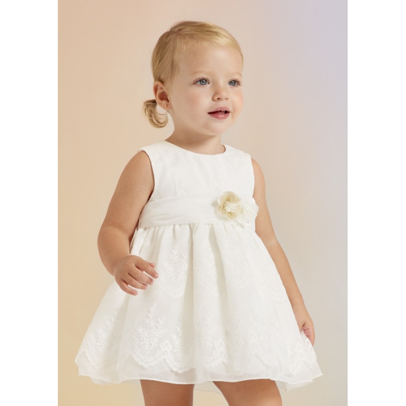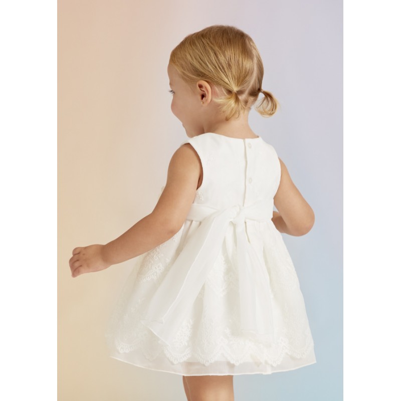 Κεντημένο φόρεμα από οργάντζα baby. Εσωτερική επένδυση 100% βαμβάκι.Άνοιγμα με κουμπιά στην πλάτη.